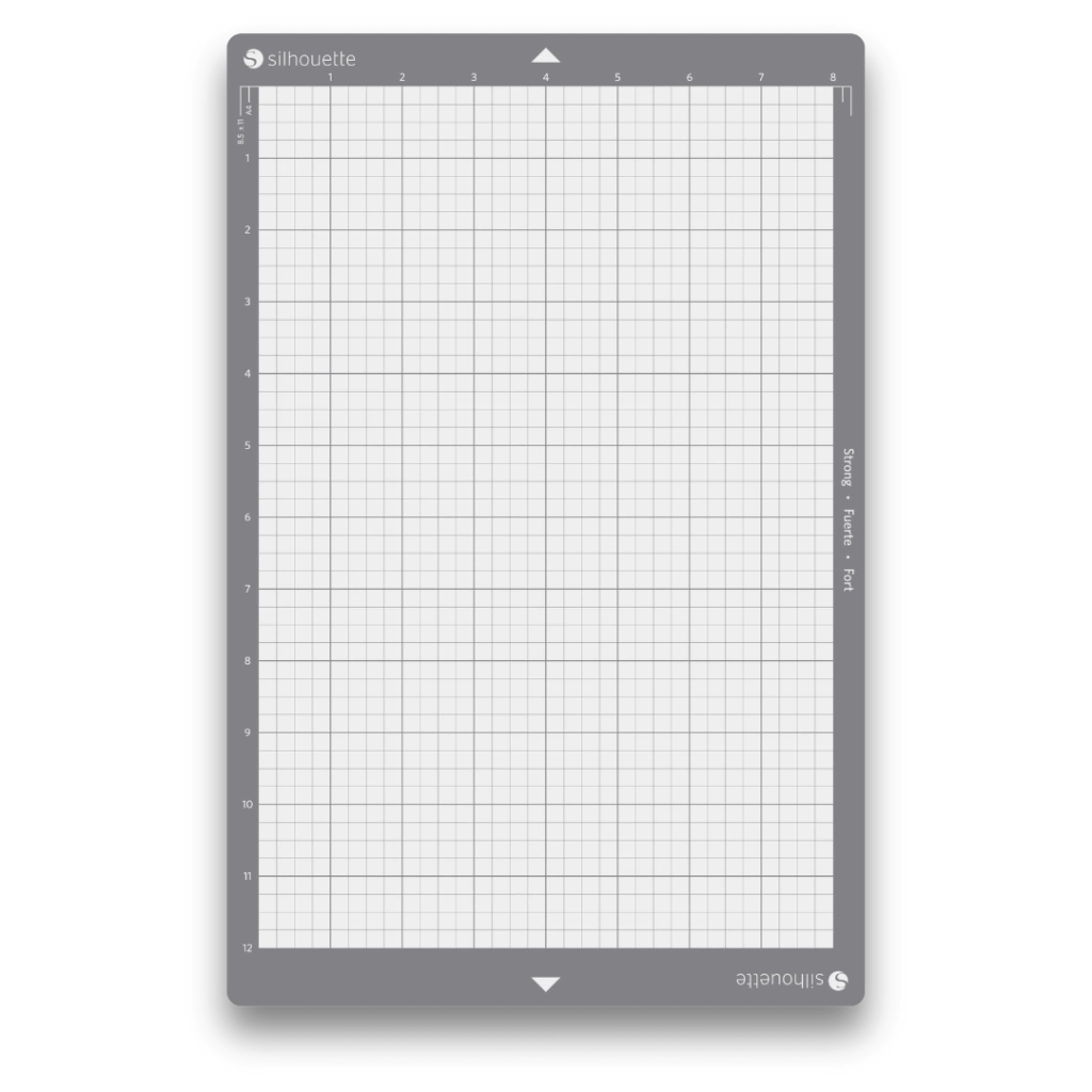 A base possui divisões impressas em grade com medidas em polegadas, que coincidem com a representação virtual exibida no software Silhouette Studio®. Com um alto nível de fixação, essa base é indicada para tecidos e outros materiais espessos ou texturizados.