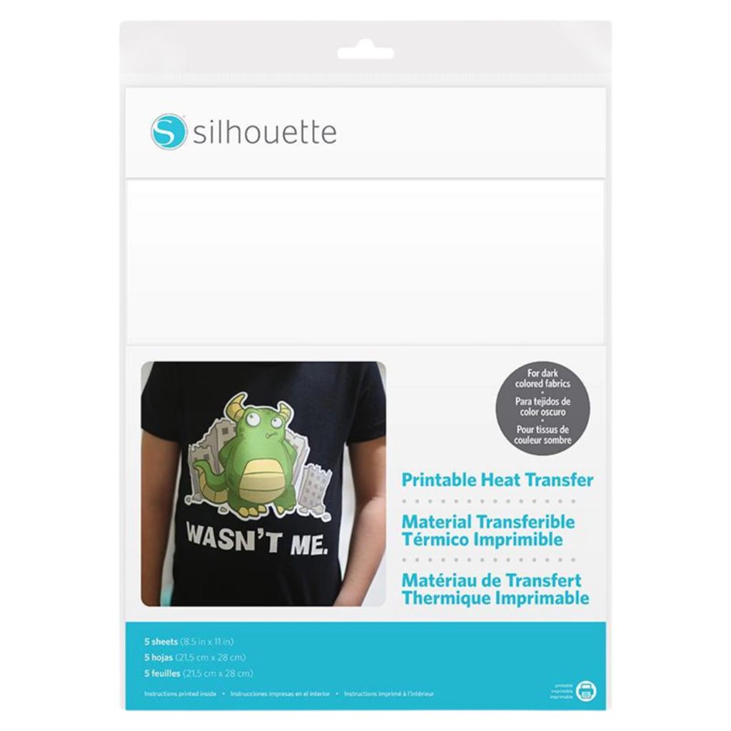 O Vinil Termocolante Imprimível é ideal para superfícies de tecidos escuros. Com ele, você pode imprimir uma imagem e recortá-la ao redor do contorno usando o recurso de Imprimir e Cortar da máquina de corte Silhouette.