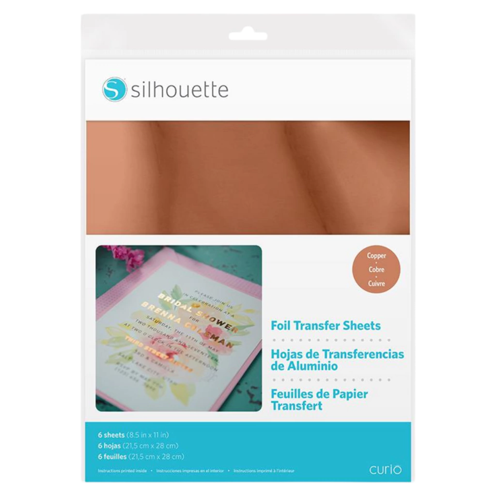 Use folhas de transferência de foil para colocar imagens e letras de foil em suas superfícies de projeto. As folhas de transferência de foil simplesmente ficam sobre a superfície do material e são então passadas pela Silhouette com uma ferramenta de embossing. Onde quer que a ferramenta de embossing pressione, seu foil é transferido permanentemente, como uma grande folha de transferência. Basta adicionar pressão e pronto! Projetos fáceis e bonitos são criados enquanto você se diverte.