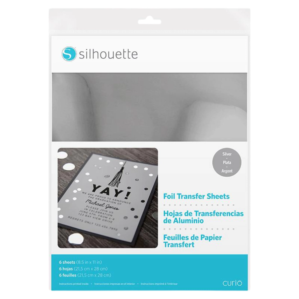 Use folhas de transferência de foil para colocar imagens e letras de foil em suas superfícies de projeto. As folhas de transferência de foil simplesmente ficam sobre a superfície do material e são então passadas pela Silhouette com uma ferramenta de embossing. Onde quer que a ferramenta de embossing pressione, seu foil é transferido permanentemente, como uma grande folha de transferência. Basta adicionar pressão e pronto! Projetos fáceis e bonitos são criados enquanto você se diverte.